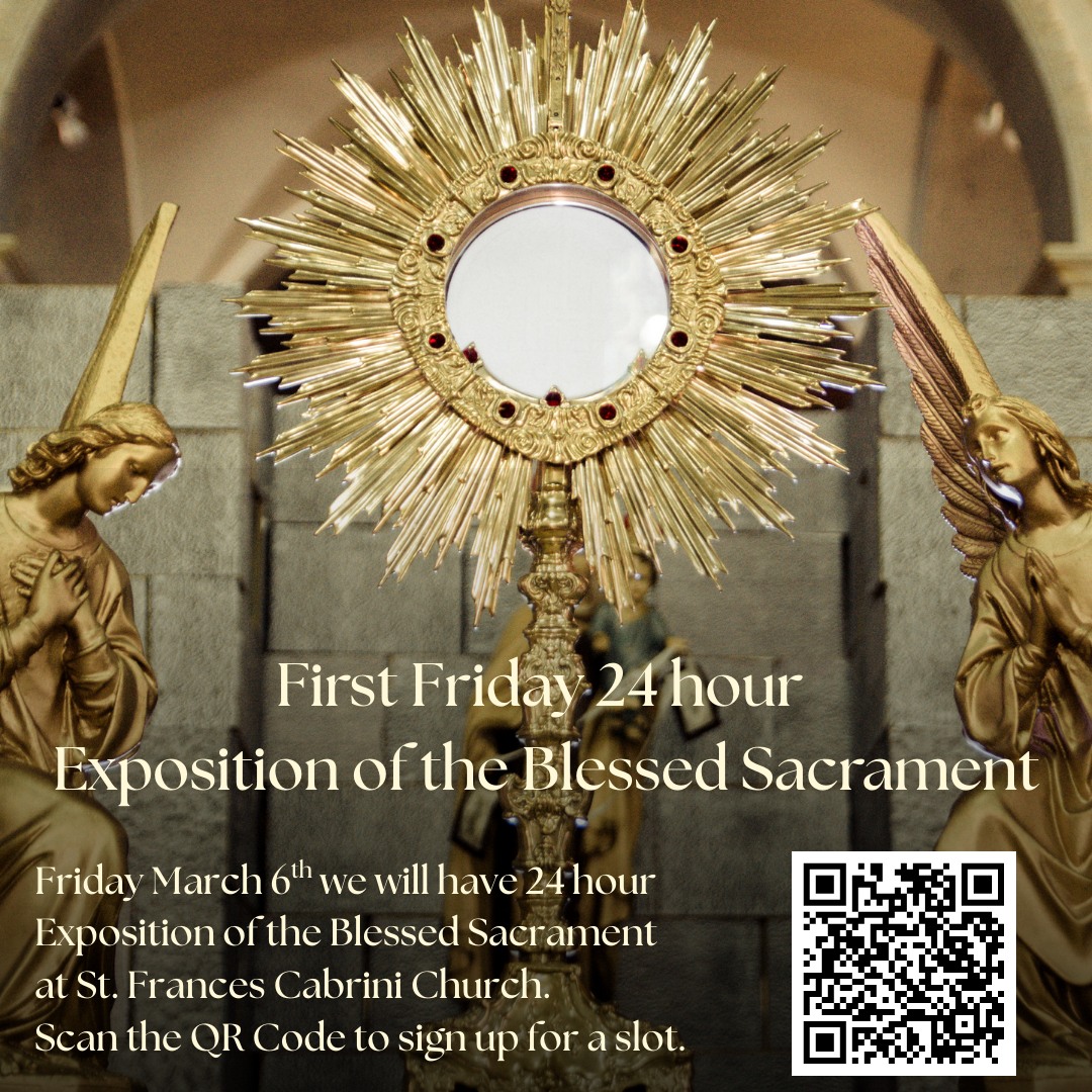 1st Friday of the month after 8:30 AM Mass.